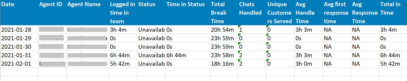 - This report contains a clear record of the time spent on each status by the agent. Further, every status is displayed in a separate row.