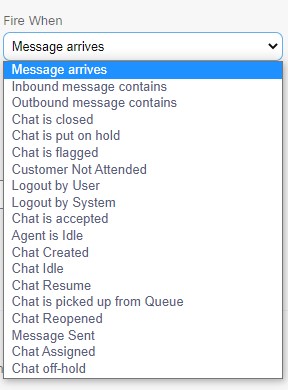 - Chat is picked up from Queue: Rule is triggered automatically when a chat is picked from queue.